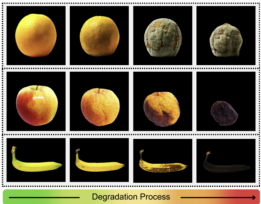 The paper presents an approach to modeling food degradation using fuzzy clustering, capturing the gradual nature of decay without relying on labeled data. It integrates traditional visual features with semantic features from Vision-Language Models to enable both low-level and high-level interpretation.