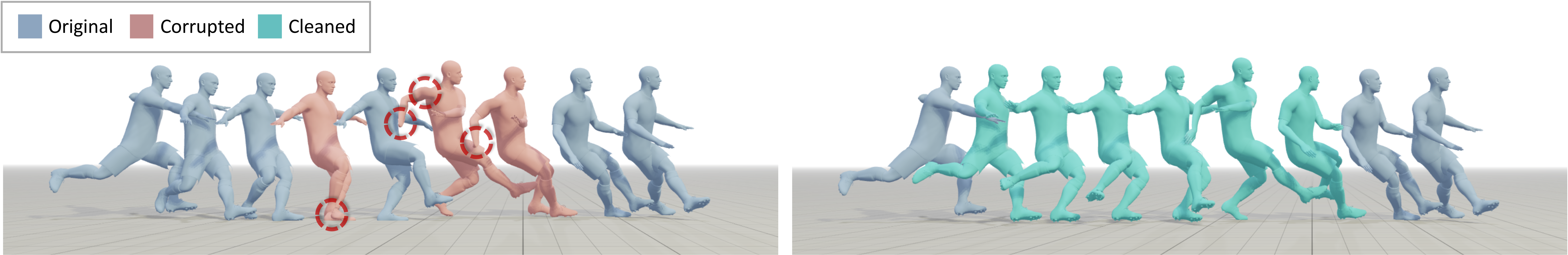 We introduce StableMotion, a diffusion-based approach for cleaning corrupted motion capture data without the need for paired clean datasets. By leveraging simple motion quality indicators, our method trains directly on raw, artifact-prone mocap data and can both detect and fix errors at test time. Applied to a 245-hour SoccerMocap dataset, StableMotion reduces motion pops by 68% and frozen frames by 81%, outperforming state-of-the-art methods while preserving motion content.